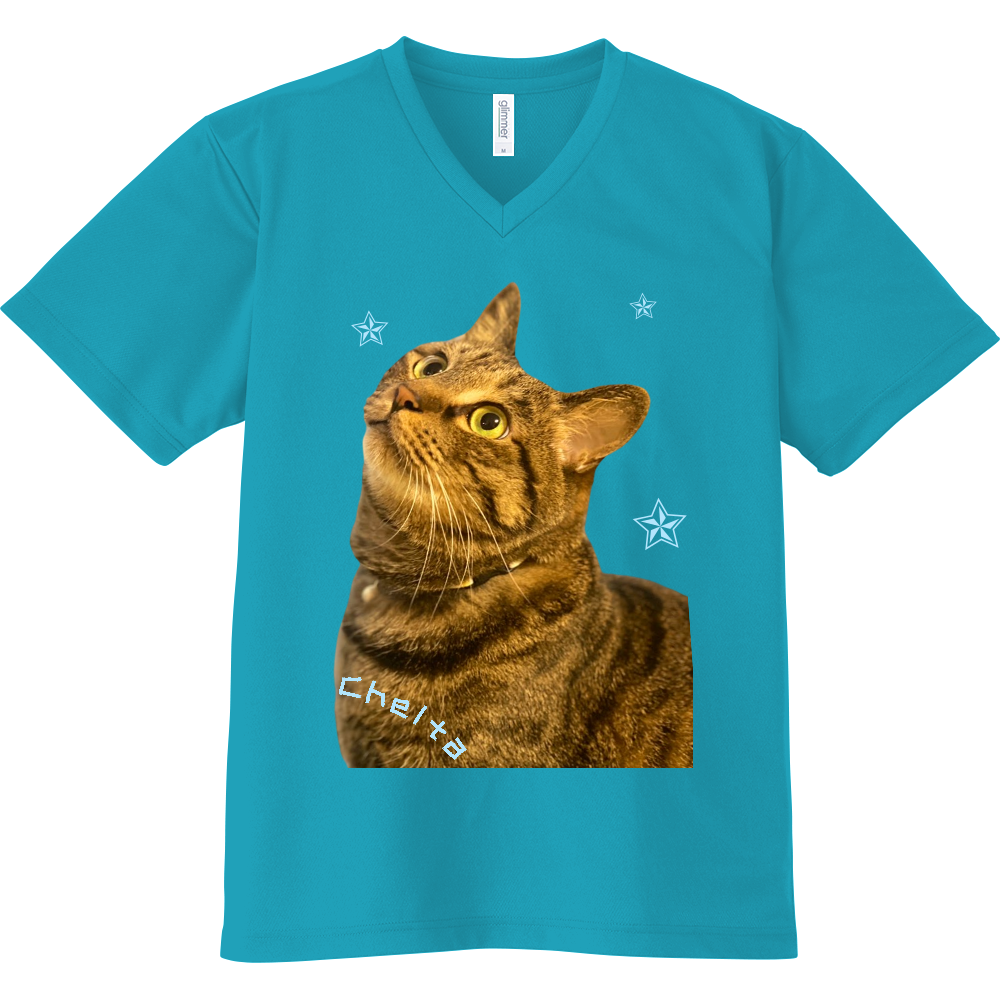 ちぇるたさんVネックTシャツ/ターコイズ
